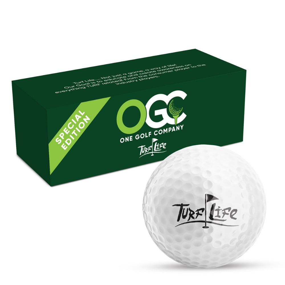 The Turf Life golf ball is a durable 2-piece ball, designed to bring awareness to the turf industry while delivering maximum distance and lower spin for golfers with moderate swing speeds.